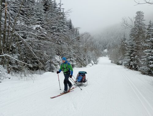 Bezvětří, teploty jen lehce pod nulou a občas vykoukne sluníčko. Tatínek včera prověřil, že je dostatek sněhu, a můžeme tak vyrazit s vozíkem přímo od auta. Toho musíme využít! Auto necháváme na Papežově. Je půl druhé a načasování je parádní,…