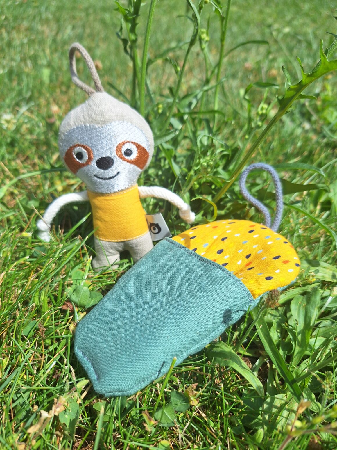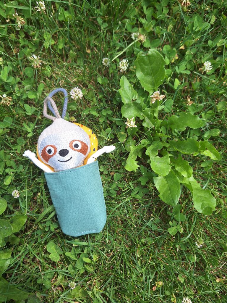 Jde o ruční práci naši milované Báry z Lesito (www.lesito.cz). Bláťa vyrostl do výšky 12cm. Má poutko, takže ho lehce kamkoliv pověsíš. Poutko má samozřejmě i spacák, který lze i sbalit (sroluješ a poutko přetáhneš kolem).